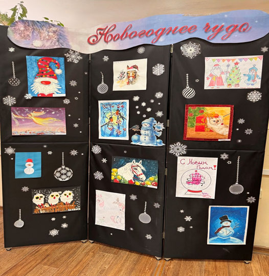 выставка детских рисунков, посвященная Новому году. Участники новогодней